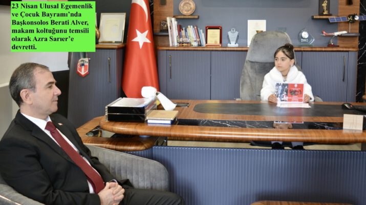T.C. Hamburg Eğitim Ataşeliği tarafından düzenlenen 23 Nisan programında Başkonsolos Berati Alver makam koltuğunu temsili olarak öğrenci Azra Sarıer’e devretti. Duygu dolu etkinlikte çocukların